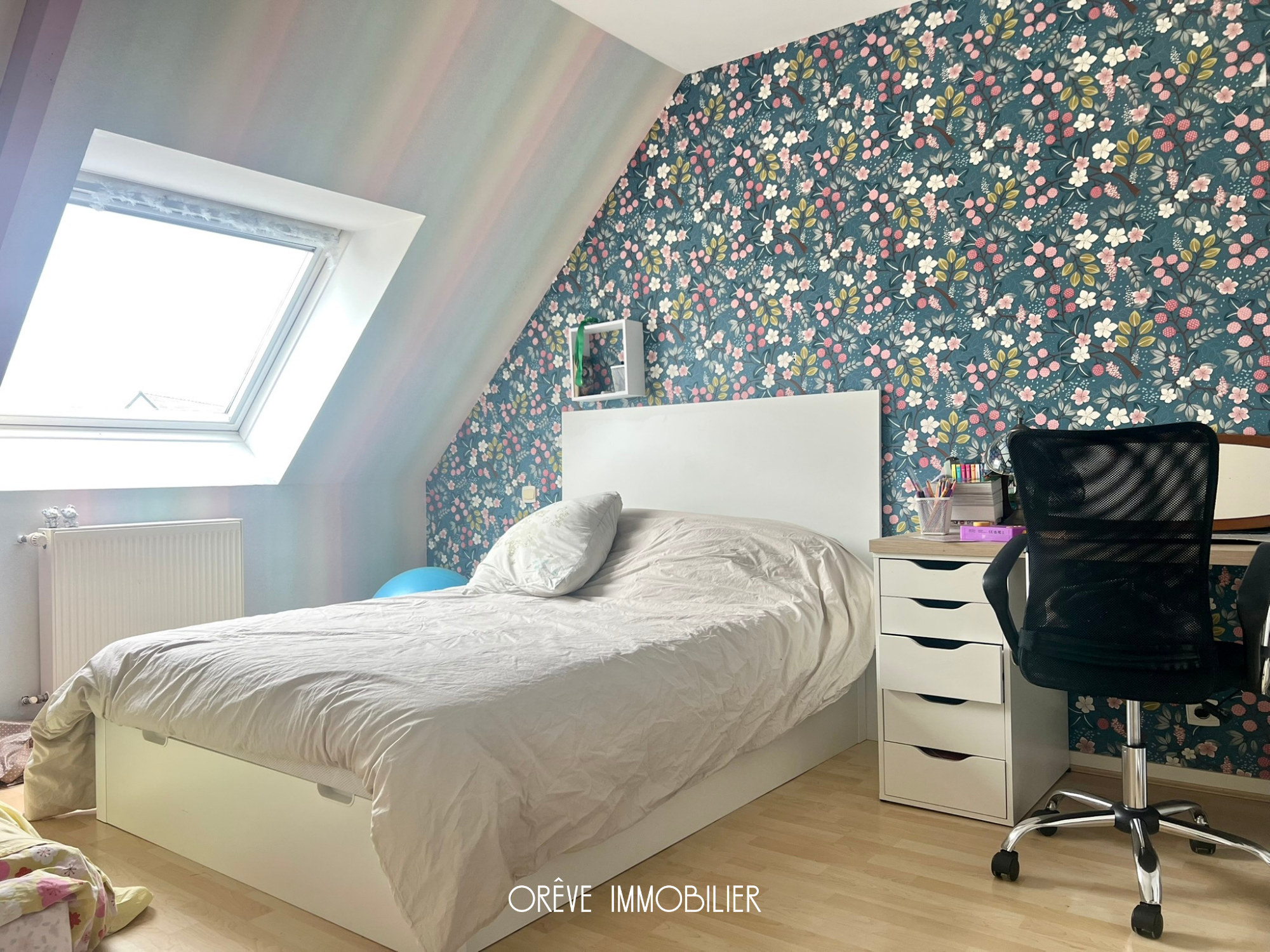 À l’étage, chacun trouvera sa place grâce à quatre chambres supplémentaires, dont trois avec rangements intégrés et une bénéficiant d’un accès à un grenier pour encore plus de stockage. Une salle de bains et un WC indépendant complètent ce niveau pensé pour la vie de famille.