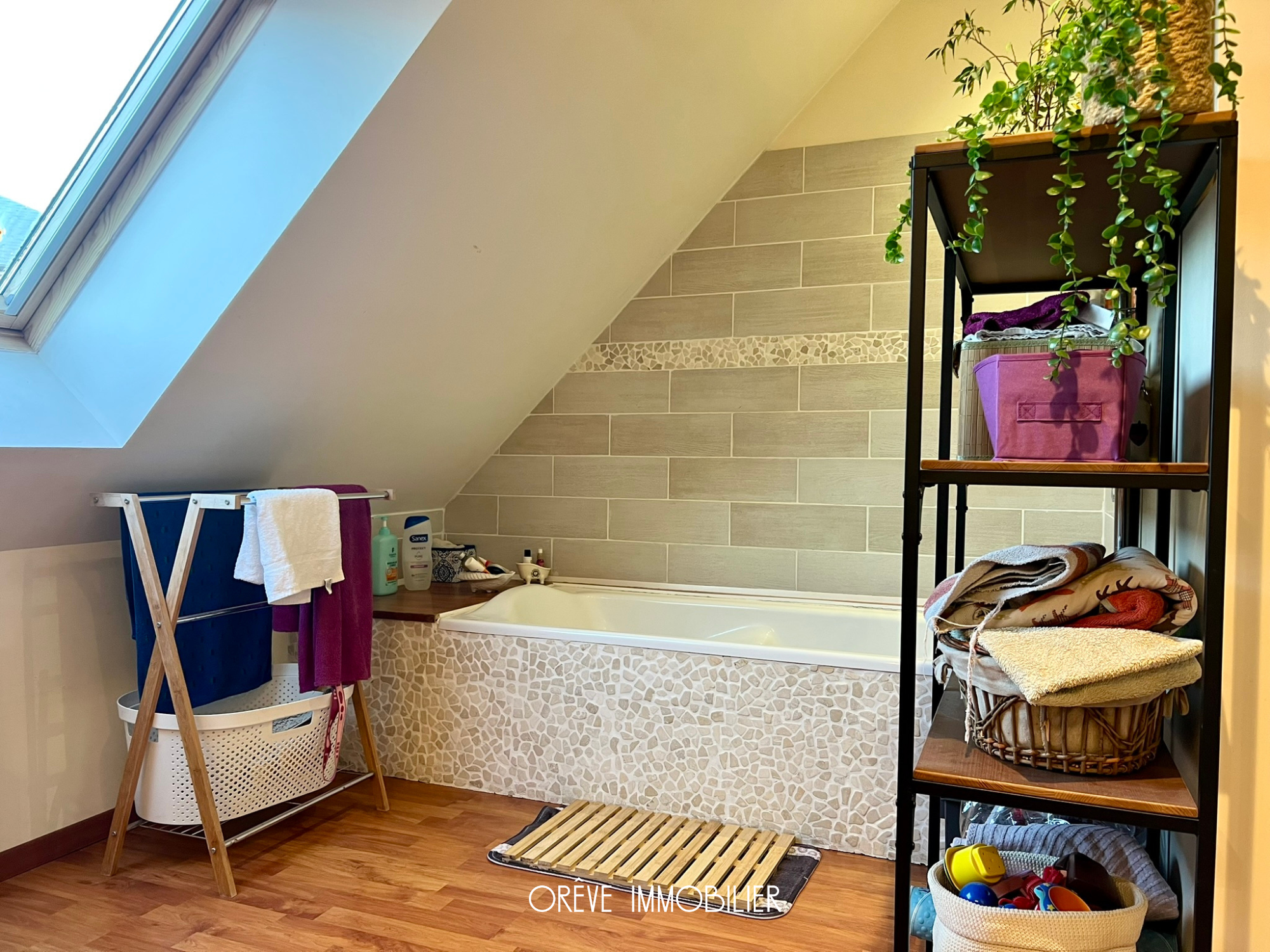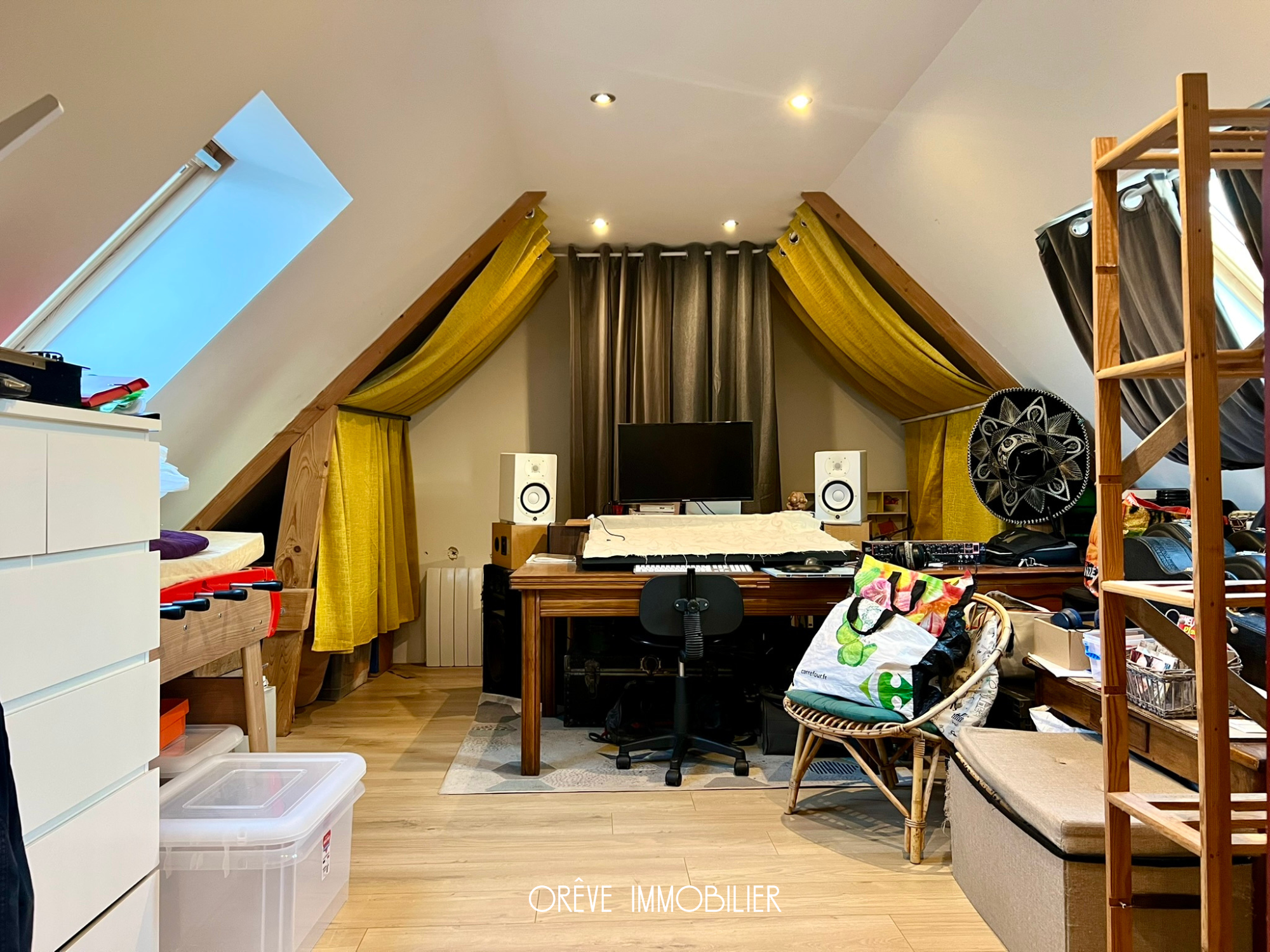 À l’étage, le palier dessert quatre grandes chambres, dont l’une dispose d’une pièce attenante à usage de dressing. Une salle de bains équipée d’une baignoire et d’une douche, un WC séparé, ainsi qu’une pièce supplémentaire à usage de rangement/dressing complètent cet espace nuit. Cette dernière donne accès aux combles non aménageables, parfaits pour le stockage.