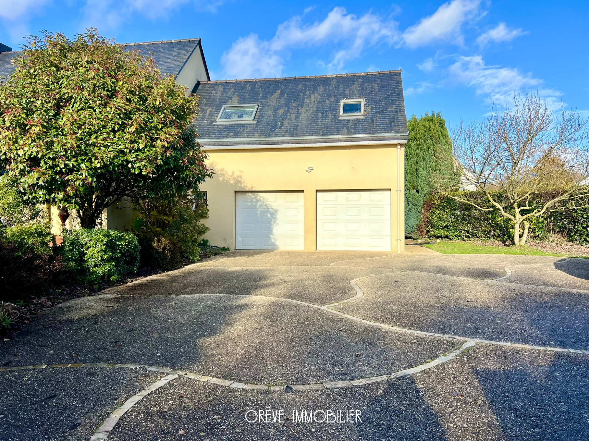 Le rez-de-chaussée propose également une chambre avec grand placard, idéale pour une vie de plain-pied, une salle d’eau, un WC indépendant, une buanderie ainsi qu’un double garage, apportant confort et praticité au quotidien.